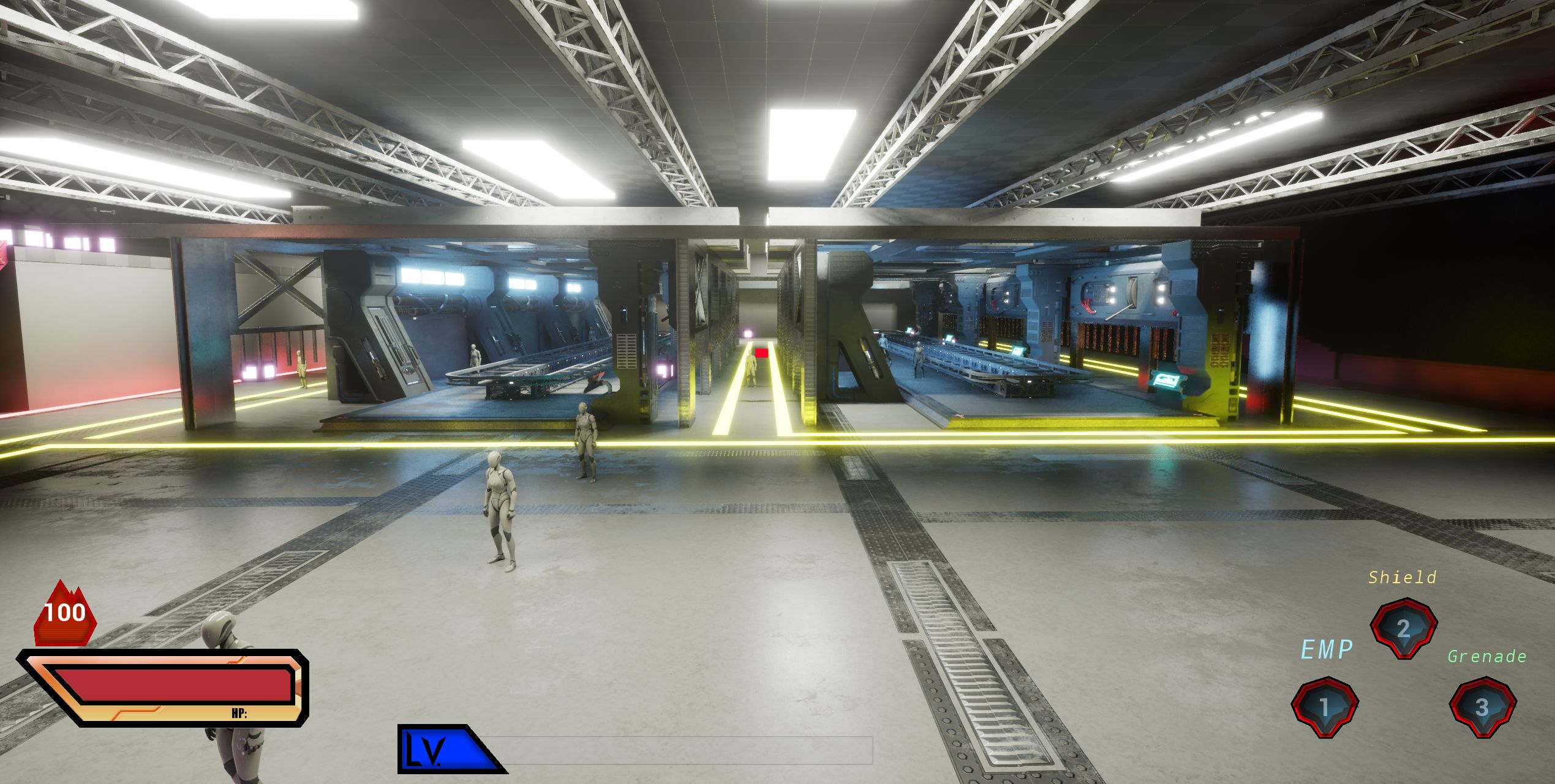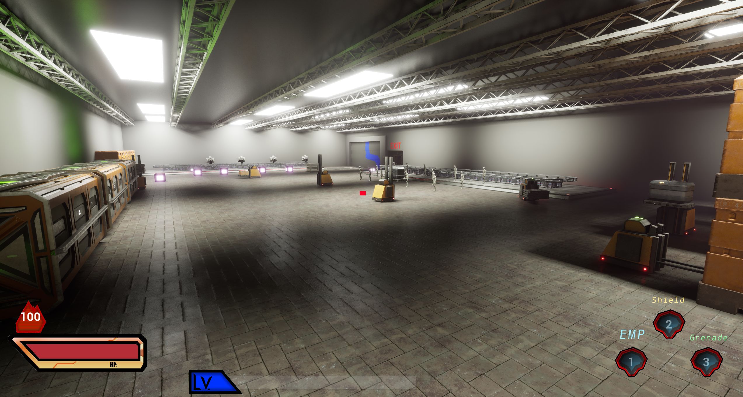 In CRCT/BRKR, the cyberpunk future is ruled by machines—and a rogue AI has taken over a high-tech robot factory. You are a skilled mercenary, armed with a gun, katana, EMP, and deployable shield, tasked with shutting down the production of these deadly robots before their army becomes too powerful. Face relentless melee droids and flying laser-equipped sentries in a high-stakes assault, where every decision and ability can mean the difference between survival and being overrun by the machine uprising.